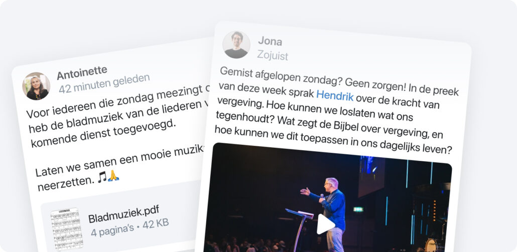 Van berichten en bestanden tot gebedspunten en muziek. Deel wat waardevol is en houd de gemeente betrokken en verbonden.