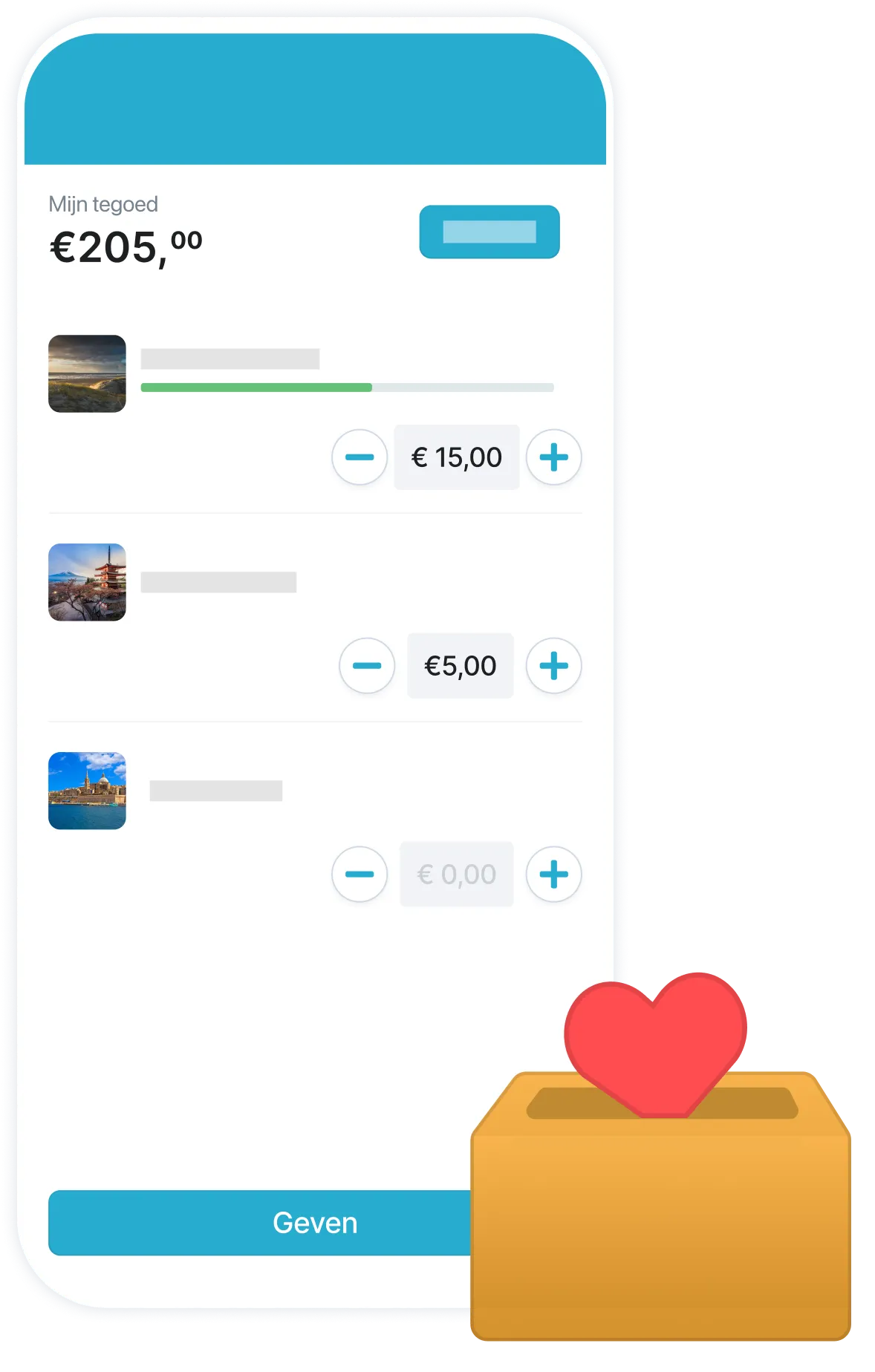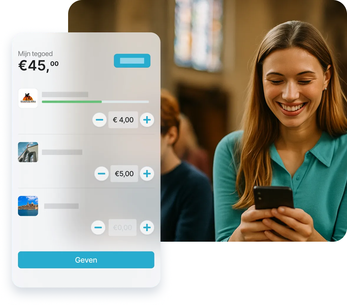 Kies zelf hoe je wilt geven: laad eenvoudig een collectetegoed op, of geef direct – helemaal zoals jij dat wilt.