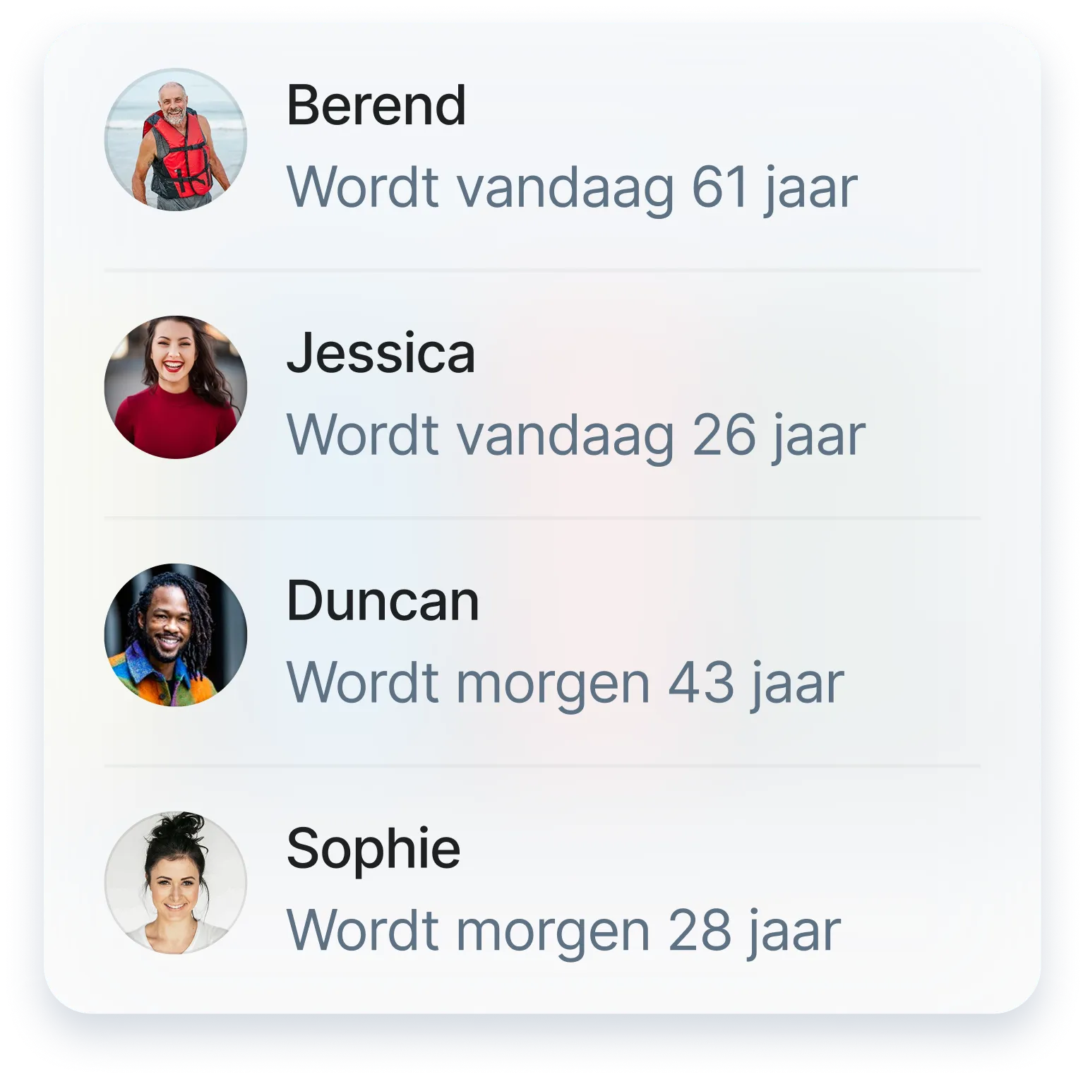 De verjaardagenmodule is een laagdrempelige manier om relaties te versterken en waardering te tonen.